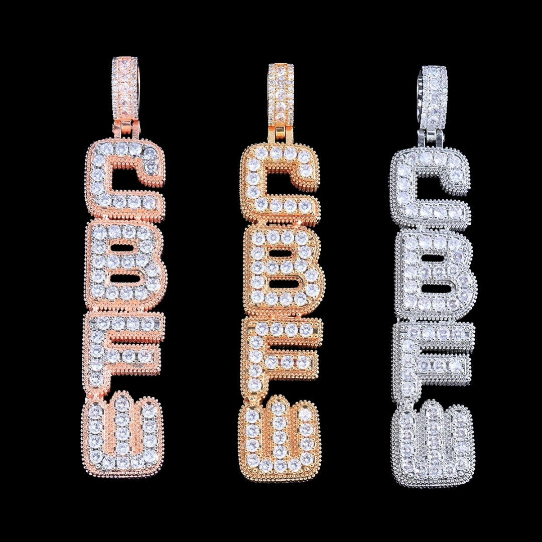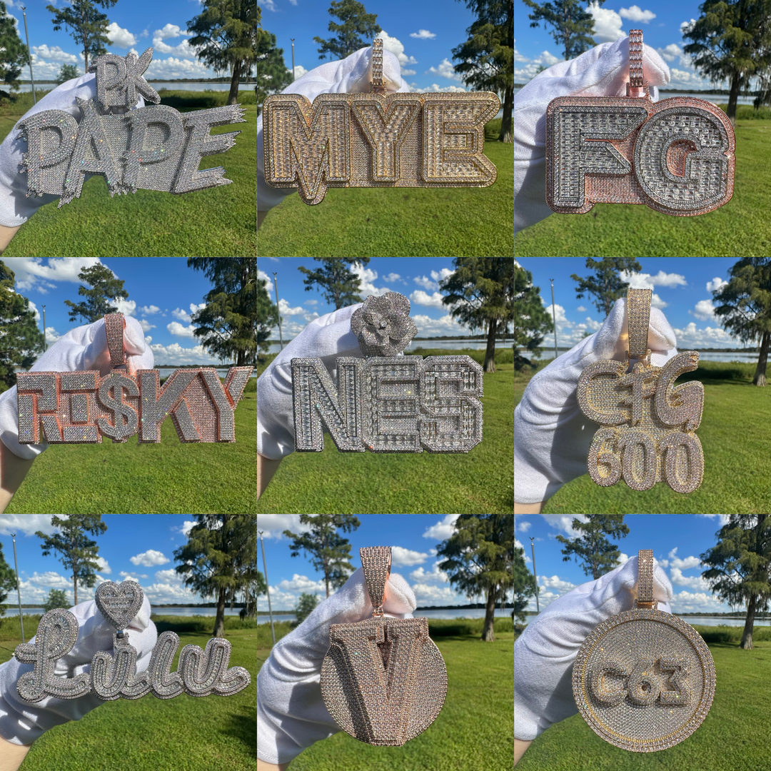 Experience the luxury with our iced out diamond custom name necklace pendants. Crafted with precision and adorned with stunning diamonds, each custom name necklace pendant is a tribute to your unique identity. Whether it's your name, a special word, or a cherished symbol, our artisans meticulously craft these pieces to reflect your style and story. Personalize your style with personalized custom jewelry name necklaces and customized chain pendants. Feel the bust down VVS shine of iced out hip hop jewelry. 50,000+ customers, 5,000+ verified reviews and 100% satisfaction. Shop now.