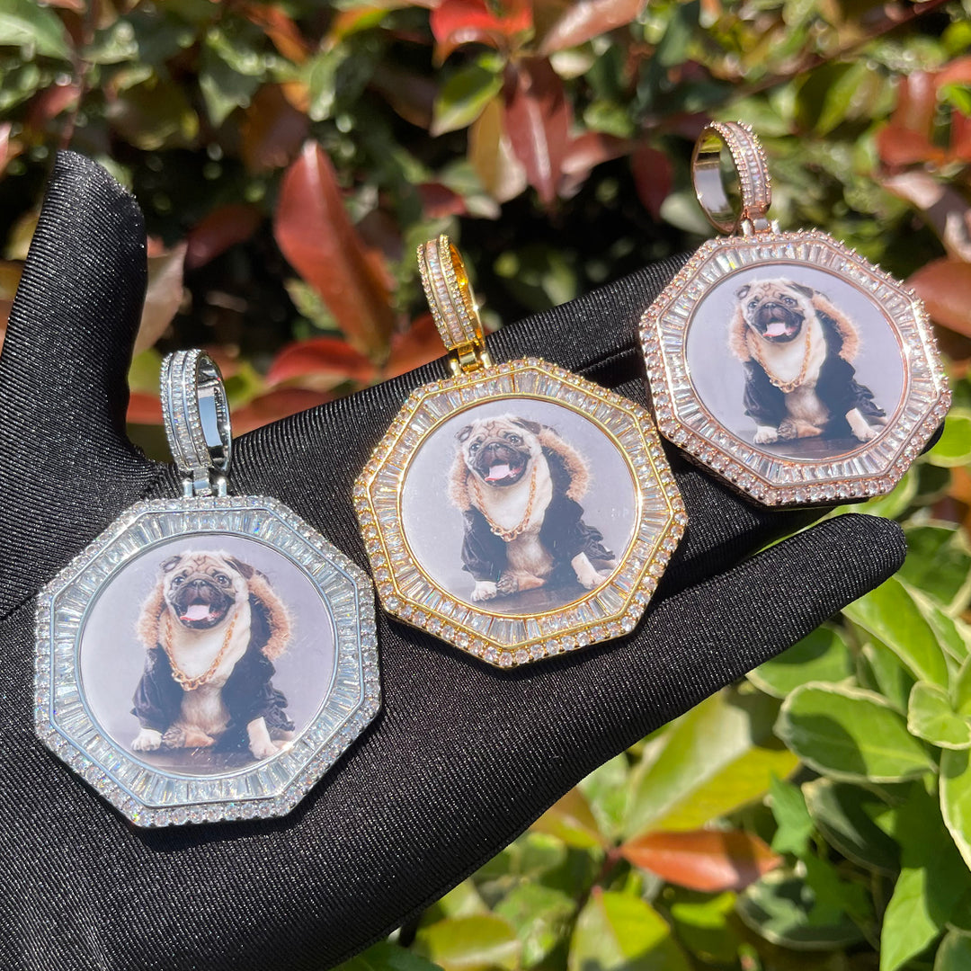 Discover our stunning collection of iced out diamond photo picture custom necklace pendants, perfect for both men and women. Create a personalized necklace with your favorite photos. Celebrate the moments that matter most with Icey Pyramid's Custom Photo Pendants, where craftsmanship meets sentimentality in a stunning display of elegance. With VVS shine and impeccable craftsmanship, our iced out jewelry will elevate your style. 50,000+ satisfied customers & 5,000+ reviews.