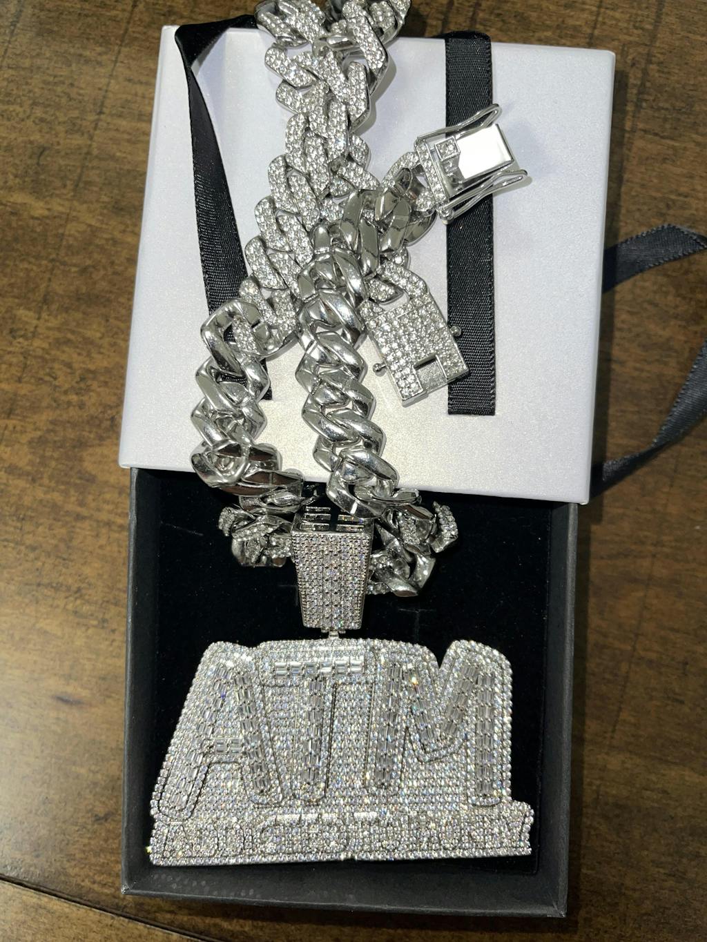 ATM Addicted To Money Iced Out Letter Diamond Pendant Necklace