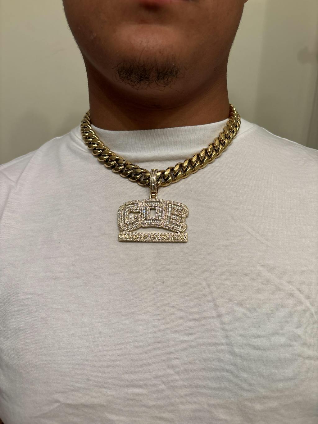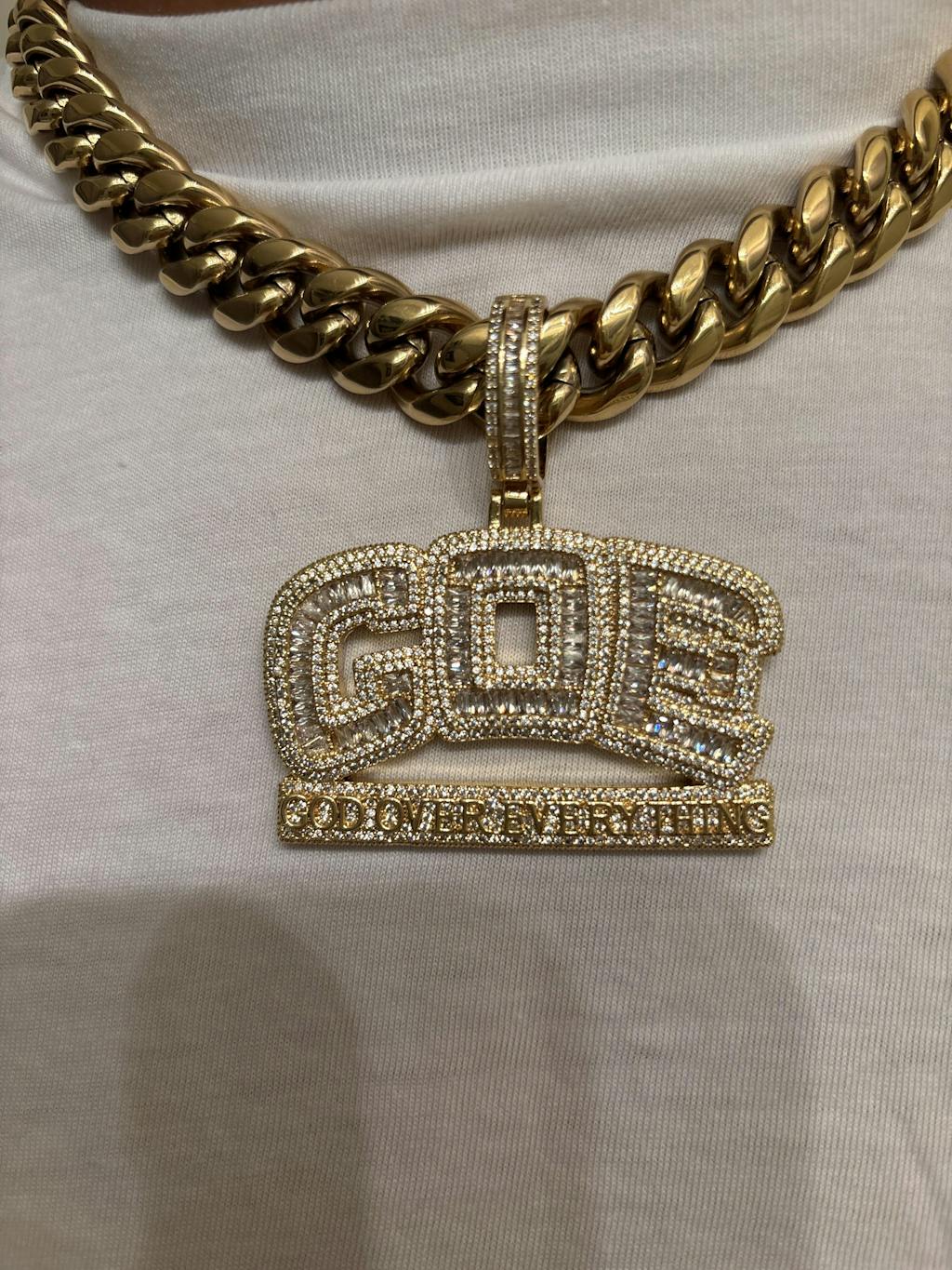GOE God Over Everything Iced Out Diamond Pendant Necklace
